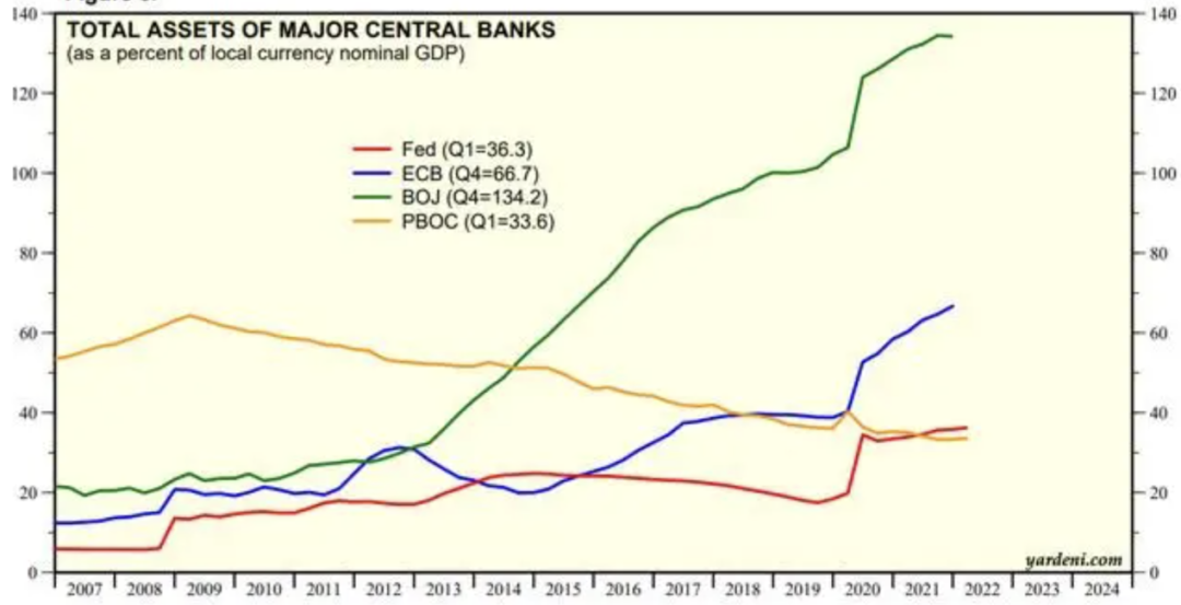 全球主要央行资产与GDP比率