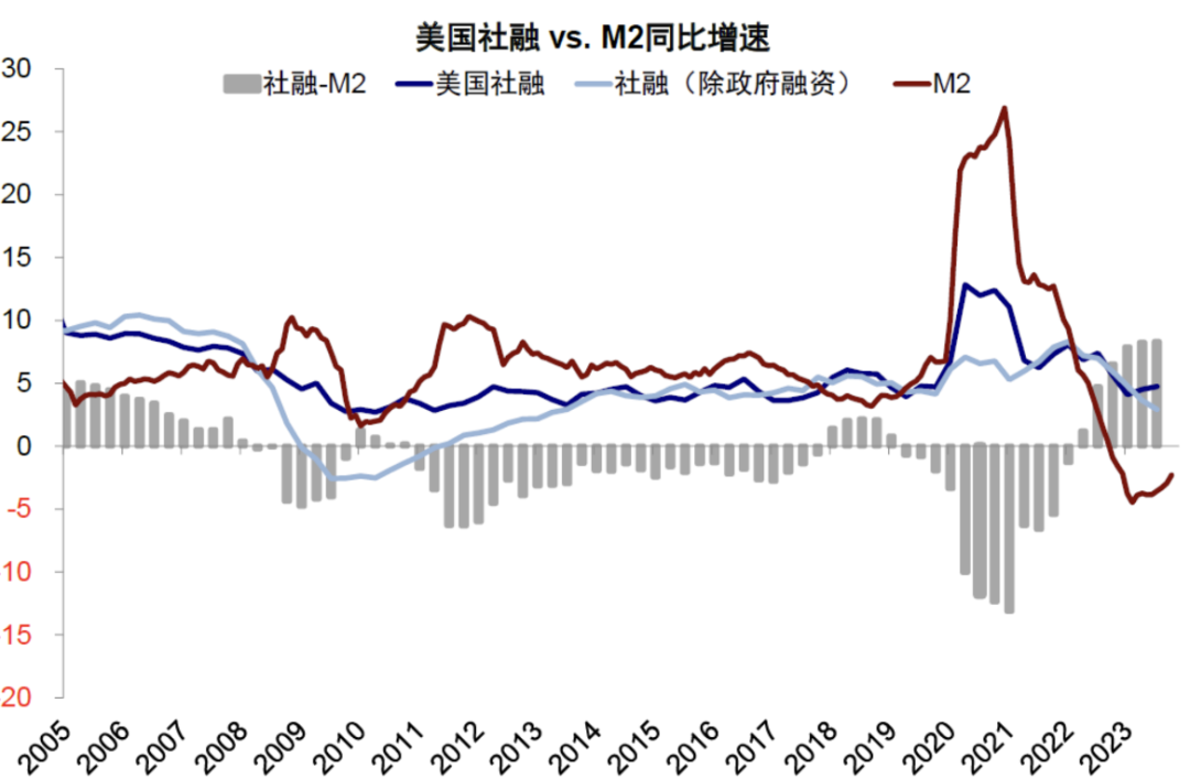 同时是大规模货币宽松,2008年“次贷危机”后美国并未出现通货膨胀,与2021-2022年形成巨大反差。这是因为两者的货币供应特性不同,“次贷危机”后美国市场投资和消费信心严重受挫,货币供应的内生性发挥作用,金融存贷循环受阻,使得美联储投放的基础货币无法显著推高M2增速,物价难以大幅上涨。