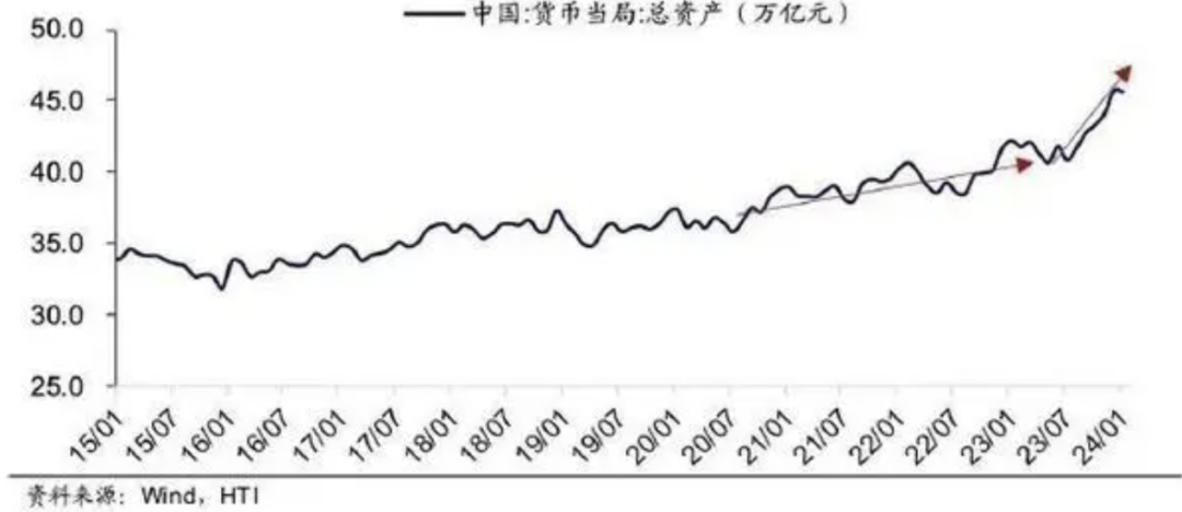 在经济运转受阻、传统货币工具失效的情况下,央行不可能独善其身,只能通过支持财政政策,修补社会总需求的不足。因此2024年4月央行表态“在央行公开市场操作中逐步增加国债买卖”,央行、财政部开始加强协同。而且,可以预见的是,未来央行经过初期国债财政实验后,将会加大对国债财政的支持力度,以扭转社会预期。